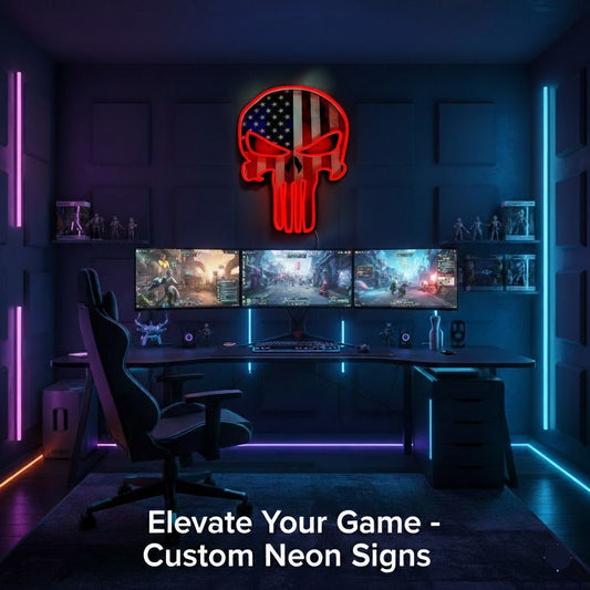USA Flag Skull Neon Sign - Ultimate Gaming Room Decor for Patriots | UV Printed LED Wall Art